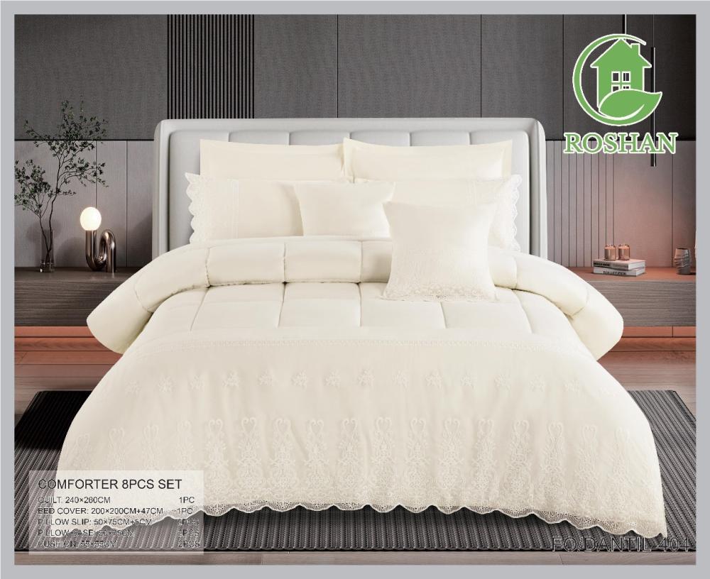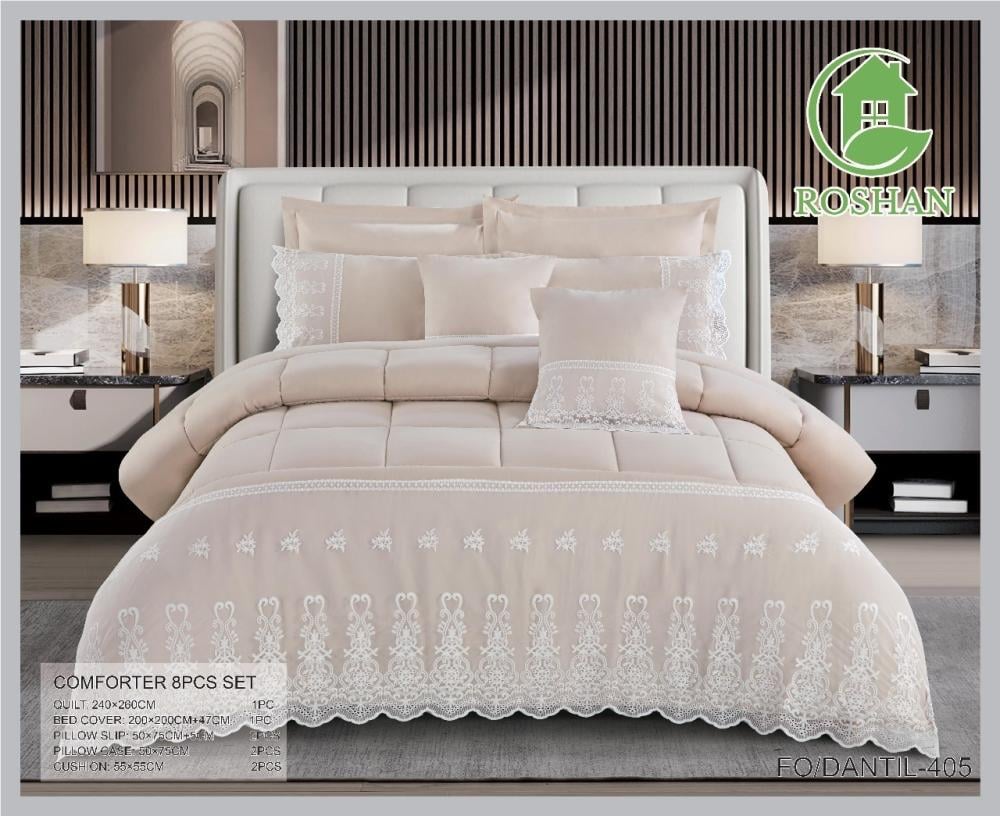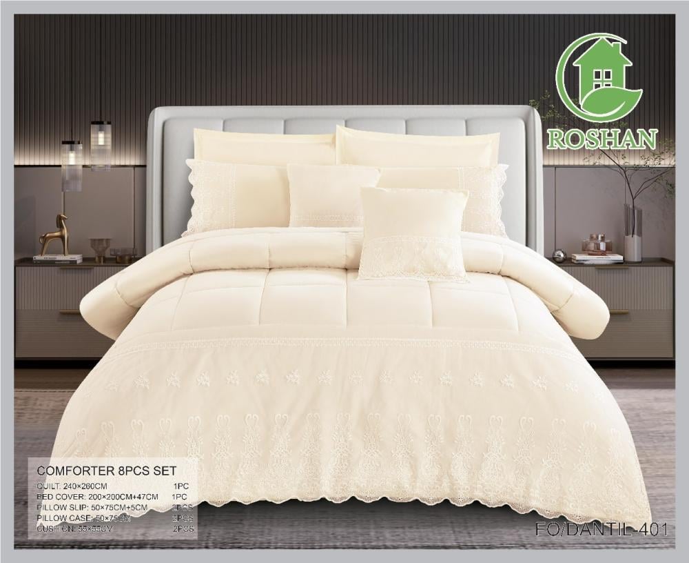 مفرش نفرين من الدانتيل مبطن بقطن من روشان يقدم تجربة نوم فاخرة ومريحة، فهو يجمع بين التصميم الفاخر والخياطة الأنيقة يتميز بتصميم الدانتيل متقن ونعومة فائقة بفضل المايكروفايبر، باختيار هذا المفرش النفرين ستستمتعين بليلة نوم مريحة وهادئة بالإضافة إلى إضافة لمسة من الأناقة والفخامة إلى غرفتك.