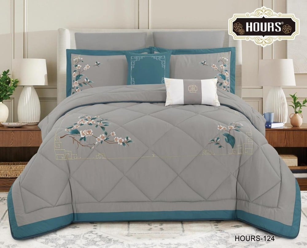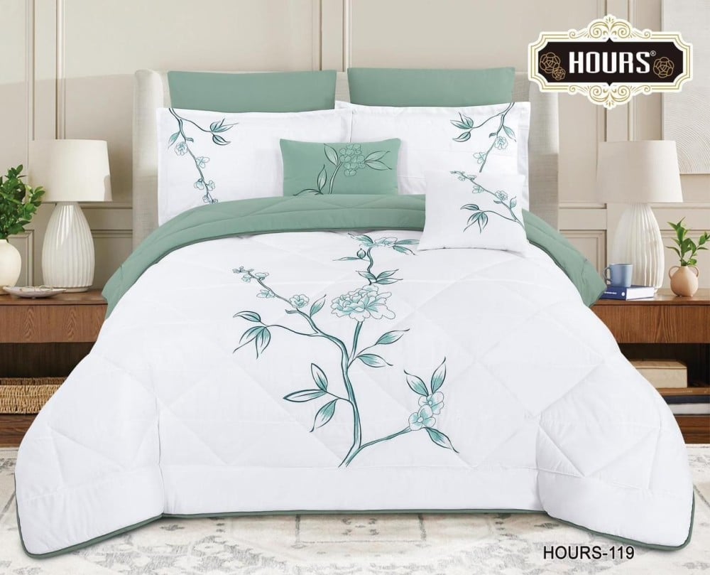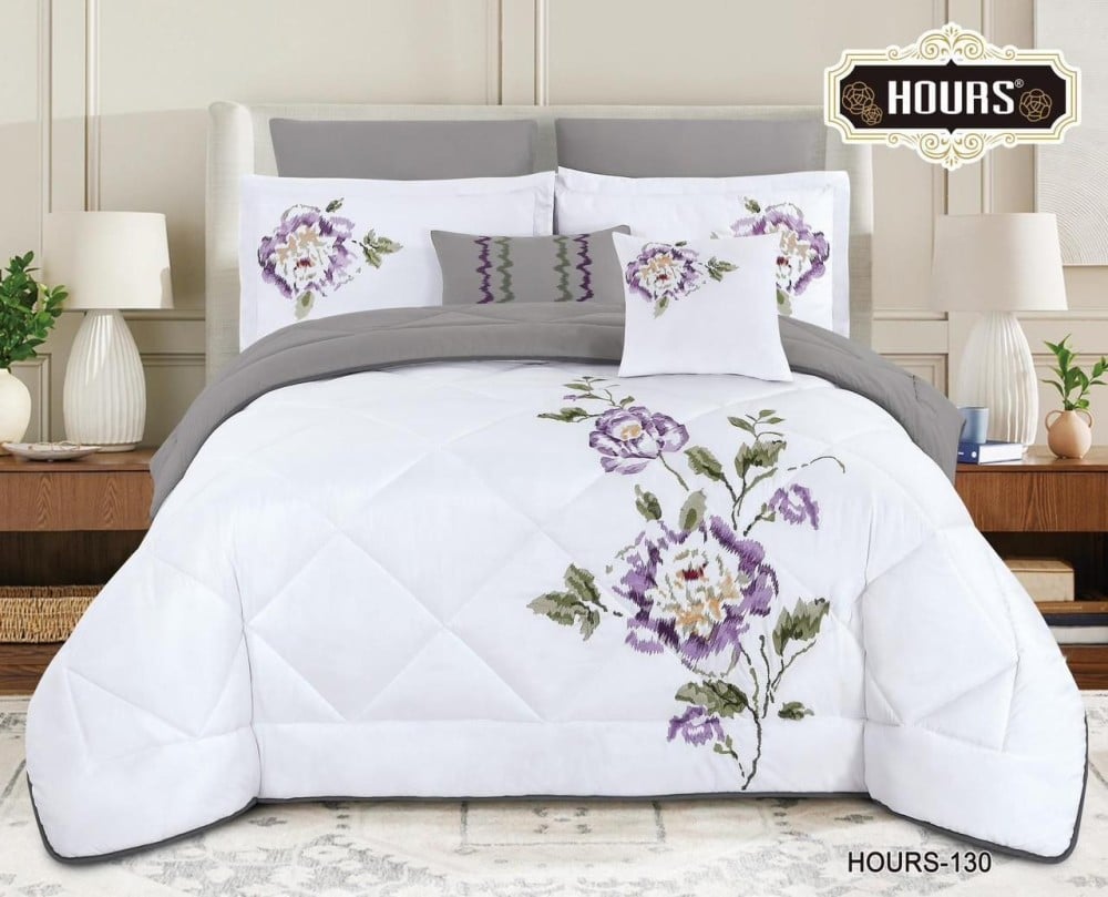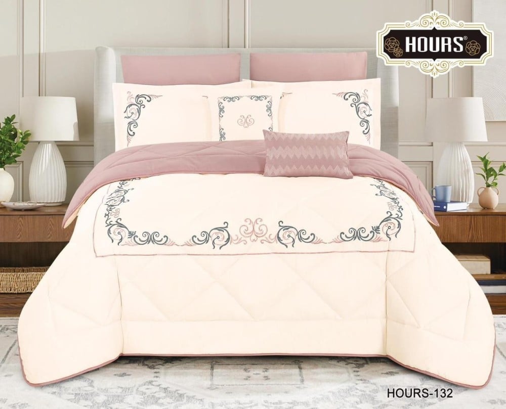 • بفضل استخدام أفخم أنواع التطريز والمواد عالية الجودة، يوفر المفرش نعومة فائقة تضمن لكم نومًا هانئًا ومريحًا طوال الليل.